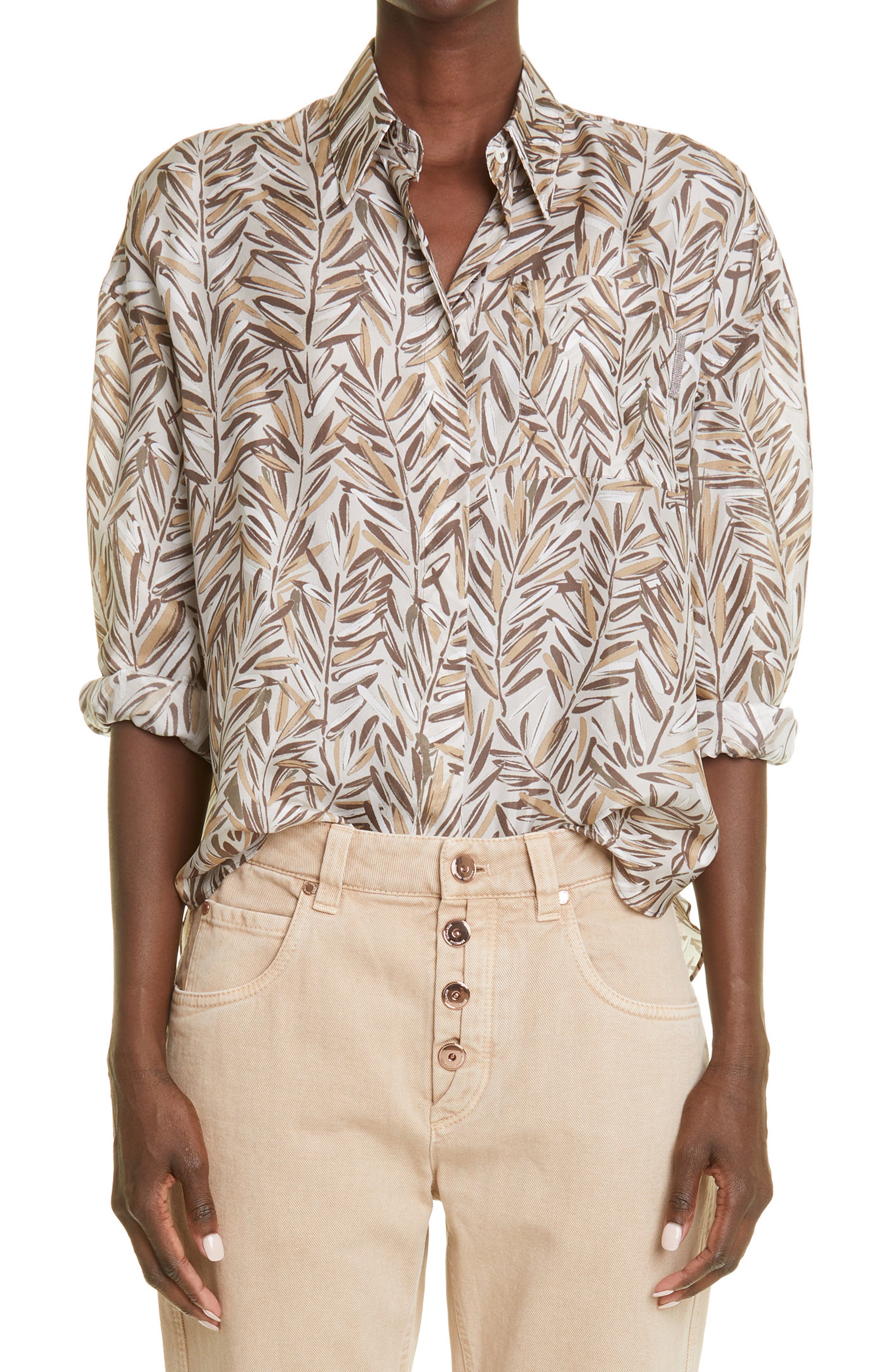 Brunello Cucinelli Bamboo Print Beaded Silk Button Up Blouse Nordstrom
